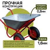Тачка Промышленник 1-колесная оцинкованная, 110 литров (пневмоколесо)